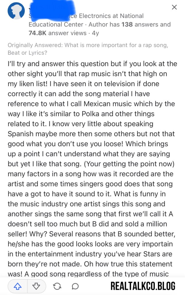 I came across a user on a forum that shared their experience and overall relationship with rap in general and it was interesting to say the least.